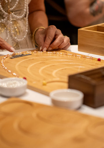 A high-end experience designed to elevate your event. Perfect for both intimate gatherings and larger events, it’s an engaging experience with a custom take-away gift. Our skilled artisans are on hand to guide your guests through the process, helping them select the perfect combination of pearls and charms to match each guest’s unique style.